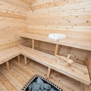 Arriving as a comprehensive kit, this sauna offers a hassle-free assembly experience. With just a few hours of your time and some extra helping hands, you can transform your prepared location into a sanctuary of opulence. Please note that the heater and rocks are not included, allowing you the freedom to select the perfect options for your bespoke sauna experience.