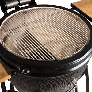 The XL Saffire is the ultimate kamado grill for those seeking top-tier culinary experiences, perfect for hosting large family gatherings and epic parties. With a generous 415 square inches of primary cooking space and the potential to expand it to an impressive 680 square inches for grilling or a whopping 1095 square inches for smoking, the XL Platinum Saffire reigns supreme as a true behemoth among ceramic kamado grills. And that's not all – you can further enhance your cooking prowess by adding the Secondary Cooking Grid, providing an additional 265 square inches of cooking real estate.