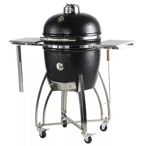 This kamado is covered by Saffire’s Limited Lifetime Warranty for the grill ceramics and 304 stainless steel parts. That’s how much we believe in the durability of your Saffire! The Revolutionary Crucible Kamado Firebox, with our very own twelve fire brick design to relieve stress and reduce breakage, will have you cooking in no time, with less worry about if you ever even need to fill out any forms to get replacement parts. In addition, we have carefully designed every outside component for the ultimate rust-resistance. 304 stainless steel keeps your grill looking great in any weather, all year round, and ceramic featuring fired-on glaze can withstand rain, snow, ice and heat. When other grills begin to rust, bubble or fall apart, your Saffire will continue to stand tall and shine!