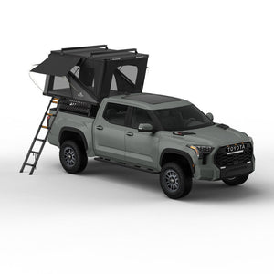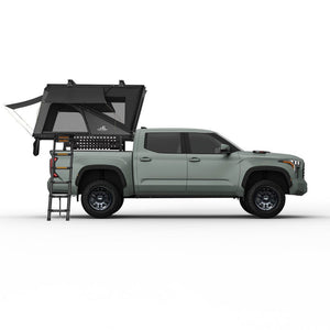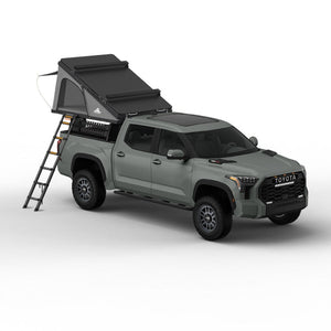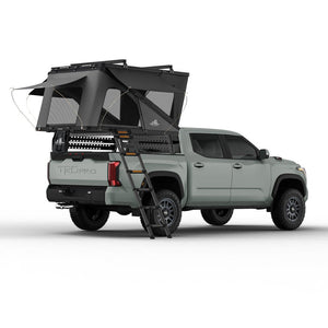 Feature-Rich Design: Equipped with four gas struts for easy opening, a roof rack for additional storage, and blackout coated fabric for privacy, the Alpine is tailored for convenience. The exterior T-Slot system allows for effortless attachment of accessories, while the slim profile ensures a sleek appearance. Multiple entryways, window awnings, and a comfortable 2.75" thick memory foam mattress enhance your camping experience.