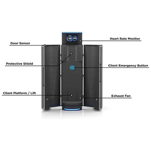 Safety features built for added safety for the user during a treatment in the cryo cabin. These features give the client a level of control over the session and give the operator the tools that help ensure the clients wellbeing.