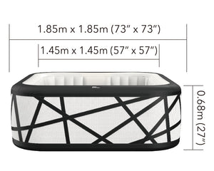 • Dimensions: 1.85m x 1.85m x 0.68m / 73" x 73" x 27"