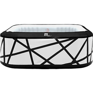 The SOHO's spacious square design allows for complete body immersion, enhanced by a variable-speed bubble feature for tailored relaxation. Its modern aesthetic, featuring mesh fabric with leather trim, adds a touch of elegance to any outdoor space.